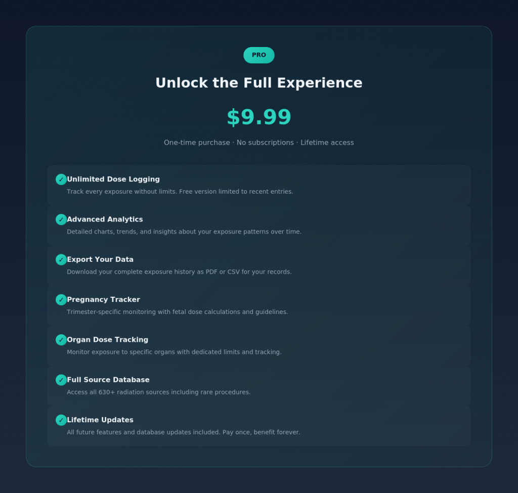 Rad Tracker empowers you to monitor radiation from flights, medical scans, and daily life with ease, ensuring you stay informed and safe every step of the way.